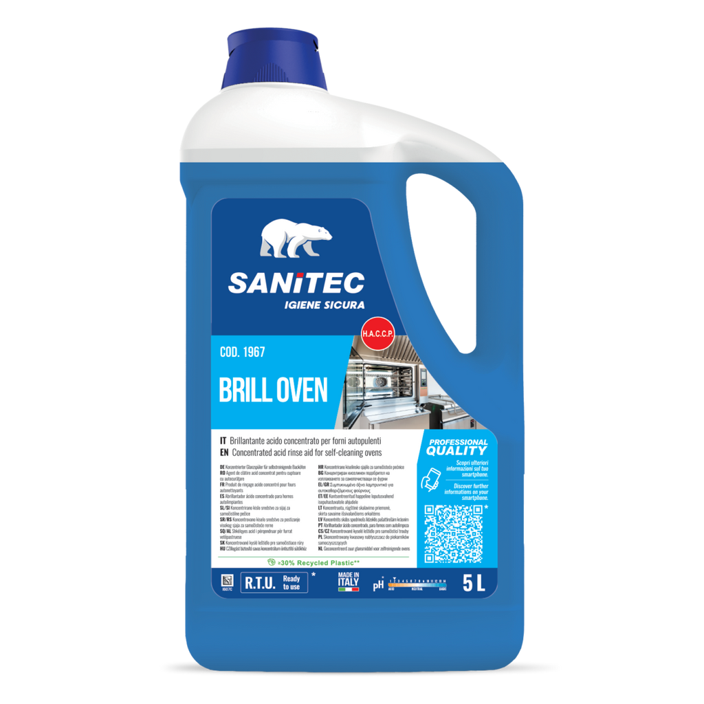 BRILL OVEN 5LT facilita l'asciugatura al termine del lavaggio, eliminando efficacemente il calcare e prevenendo la formazione di aloni. Questo prodotto lascia le superfici perfettamente brillanti e neutralizza ogni residuo di detergente, garantendo una pulizia impeccabile e duratura. Ideale per chi cerca risultati professionali con un tocco di raffinatezza.