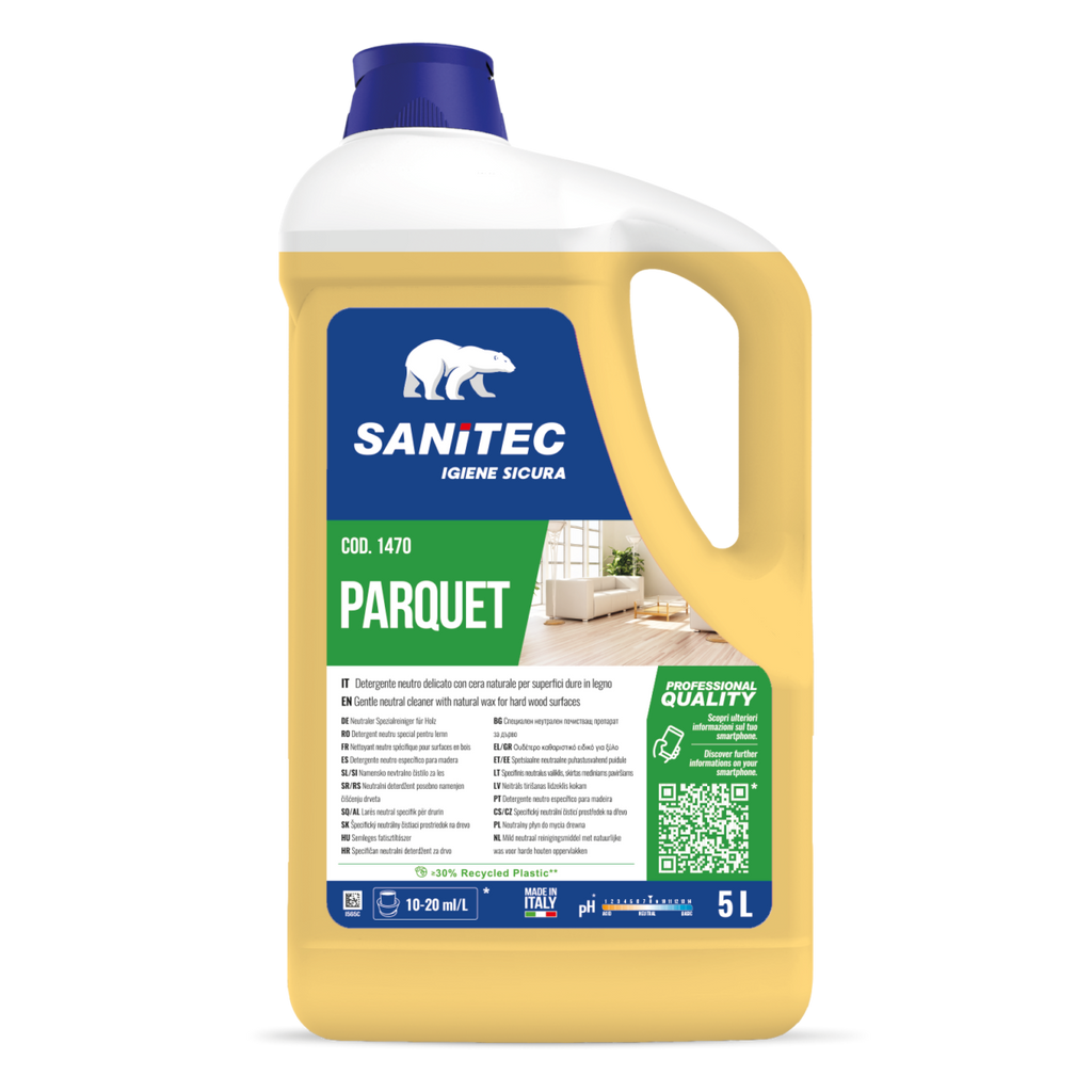 PARQUET FLOREALE 5LT è un detergente neutro arricchito con cera naturale, ideale per la pulizia quotidiana dei pavimenti in legno. Protegge e nutre la superficie, esaltandone la lucentezza naturale, mentre lascia nell’ambiente un delicato e raffinato profumo floreale. Perfetto per mantenere l’eleganza e la cura del parquet con un gesto semplice e quotidiano.