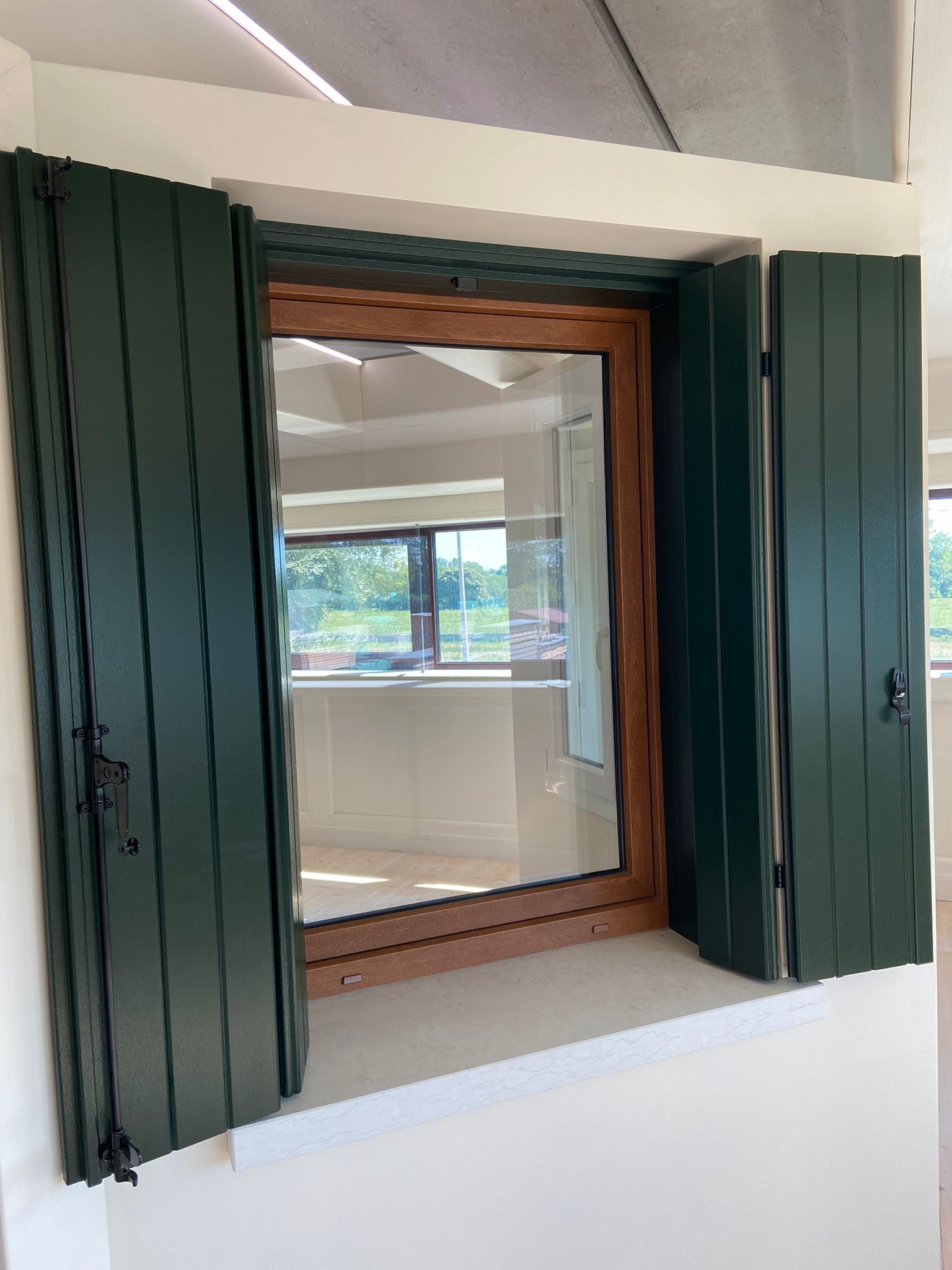 Scuro alla padovana con snodo e con telaio monoblocco.  Completo di fermascuri a calamita ed accessori di serie.
