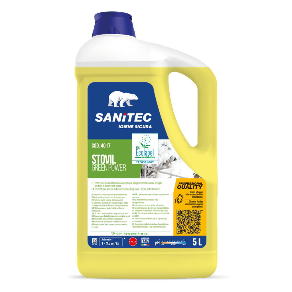 STOVIL GREEN POWER 5LT è un detergente avanzato che elimina efficacemente grasso e residui di cibo, garantendo stoviglie impeccabili. La sua formula sequestrante previene la formazione di aloni e calcare, mantenendo la lavastoviglie efficiente e pulita. Grazie alla funzione Splendi Acciaio, le stoviglie risultano brillanti e senza macchie d’acqua. La Protezione Attiva contrasta la formazione di incrostazioni, mentre la composizione a basso schiumaggio assicura un risciacquo rapido e completo. Certificato EU Ecolabel, questo prodotto coniuga prestazioni elevate e rispetto ambientale.