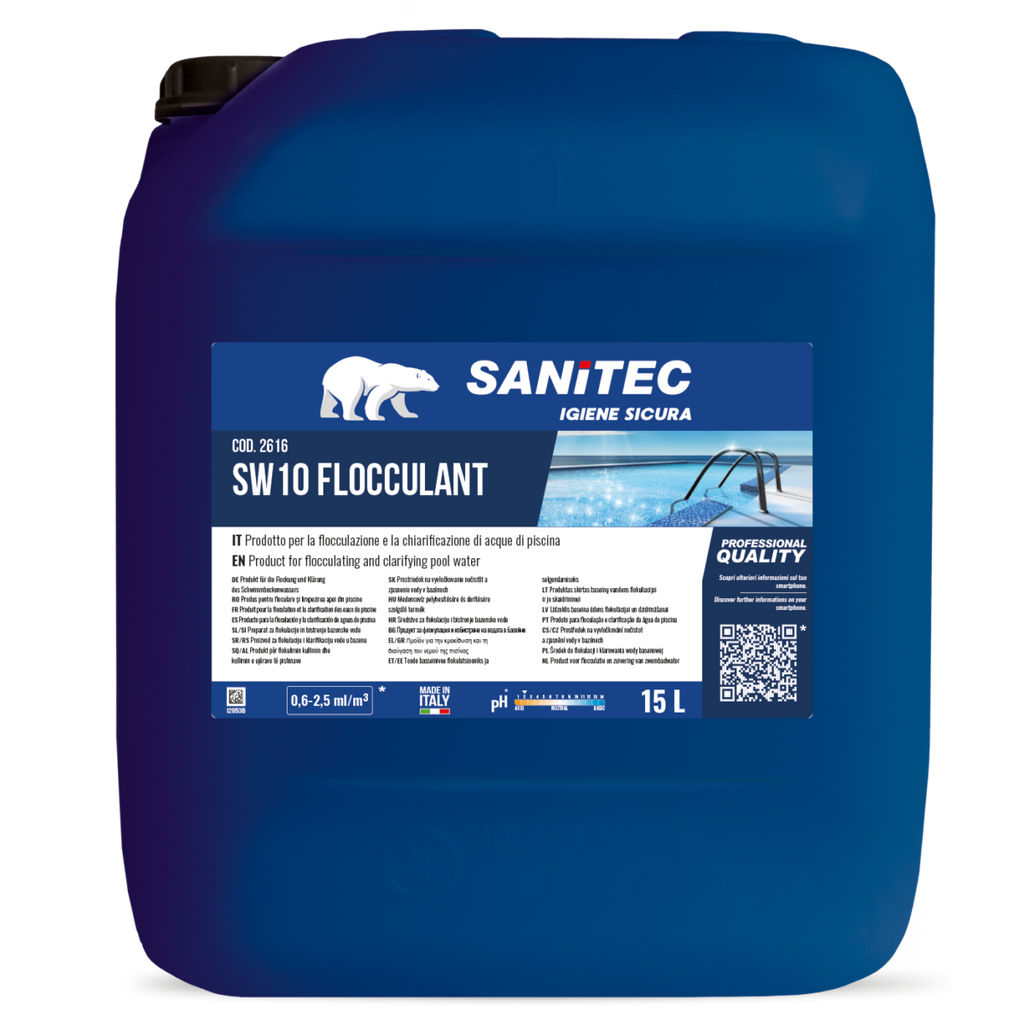 SW10 Flocculant 15LT favorisce una coagulazione efficace delle particelle più sottili che causano la torbidità dell’acqua, migliorandone la limpidezza. Il suo utilizzo regolare contribuisce a ridurre la formazione di incrostazioni e ottimizza il consumo del correttore di pH. Particolarmente indicato per il trattamento di acque torbide contaminate da ferro, manganese e ammoniaca, garantisce un intervento mirato e raffinato per il mantenimento della qualità idrica.