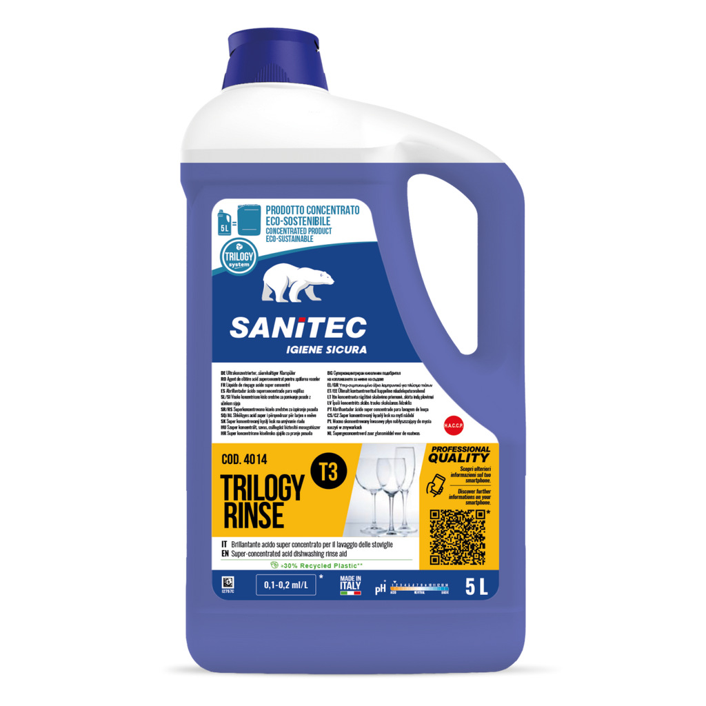 TRILOGY RINSE T3 5LT offre un eccellente potere asciugante grazie al suo sistema a schiuma controllata, garantendo stoviglie perfettamente pulite senza aloni né macchie d'acqua. Progettato per essere utilizzato insieme a Trilogy Wash T1 e Trilogy Boost T2, consente dosaggi personalizzati in base alla durezza dell’acqua e al livello di sporco. La sua formula priva di fosforo ed EDTA assicura un utilizzo responsabile e rispettoso dell’ambiente.